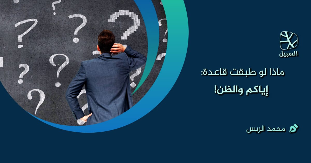 وقد وضعها رسول الله محمد صلى الله عليه وسلم دستوراً لنا حين قال: “إياكم والظن، فإن الظن أكذب الحديث” [متفق عليه].